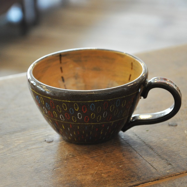 茶色のカップにカラフルな模様がとてもキュート。 陶芸作家「双子堂」(沖縄読谷村) 沖縄の自然をモチーフにした作品は可愛らしいの一言!軽くて普段使いができると、使い心地も評判です。品薄が続いていますので、気になる方はお早めにチェックしてくださいね!