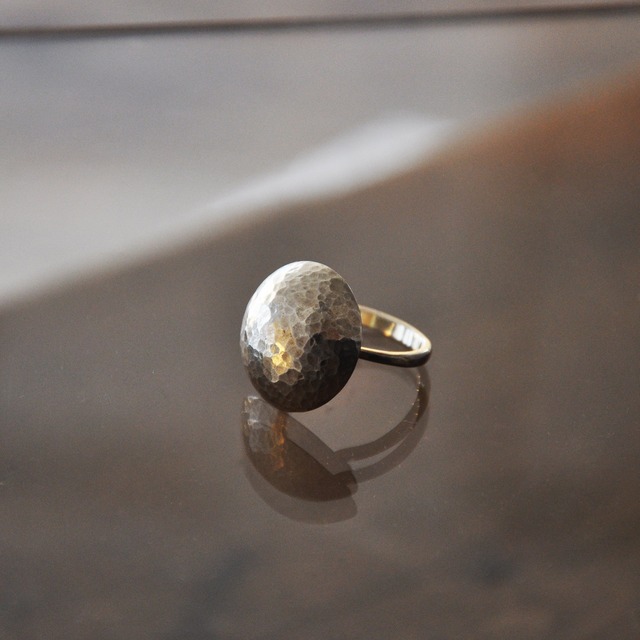 ハンマーでたたきあげた、キノコのようなシルバーリング。