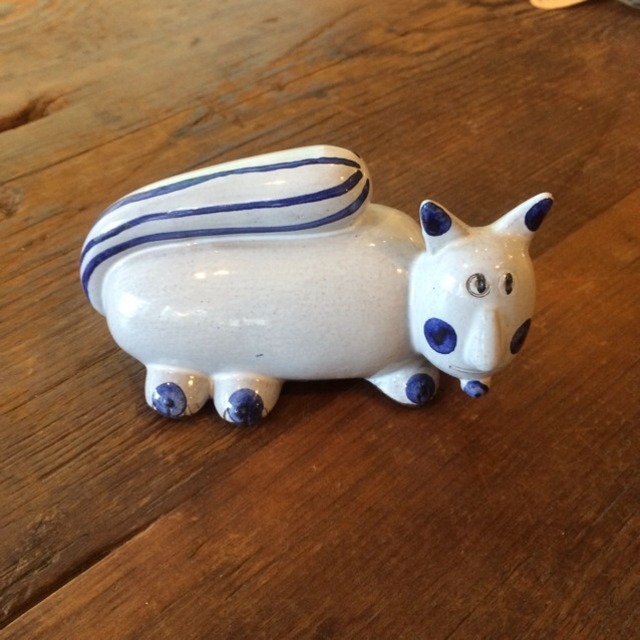 見てるだけで和んでしまう、猫の陶器製置物。デザイナーと思われる落款あり。年代不明
