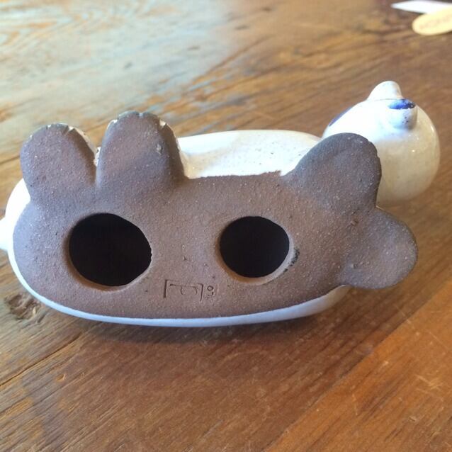 見てるだけで和んでしまう、猫の陶器製置物。デザイナーと思われる落款あり。年代不明