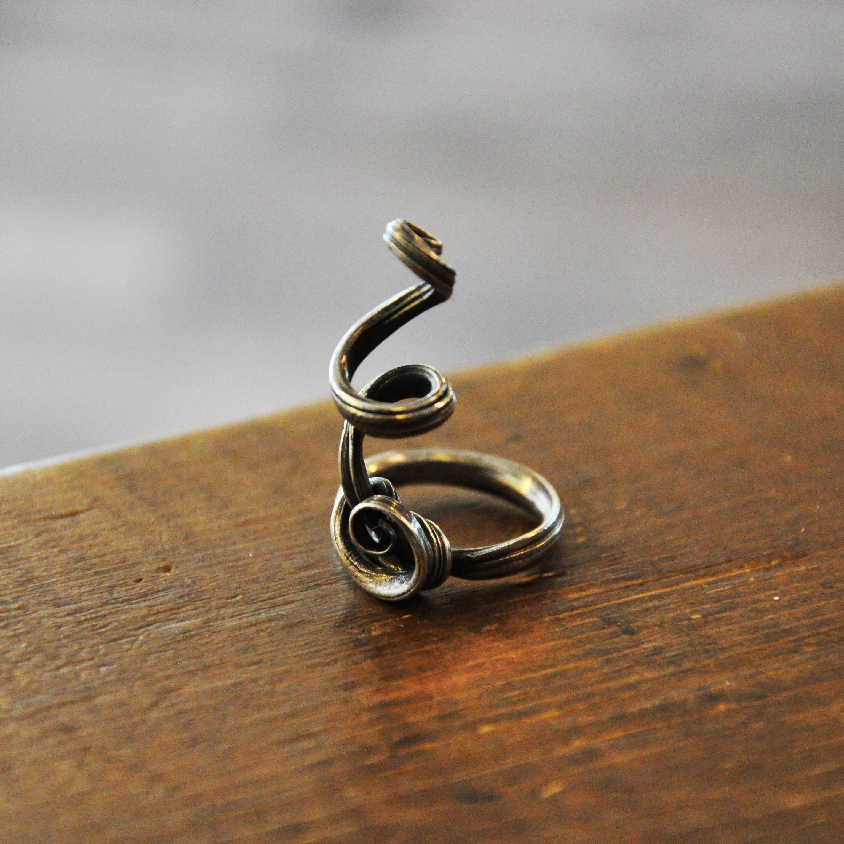 個性的なシルエットですが、驚くほど指にフィットするシルバーリング。存在感のあるデザインは一度見ると忘れることができません。
