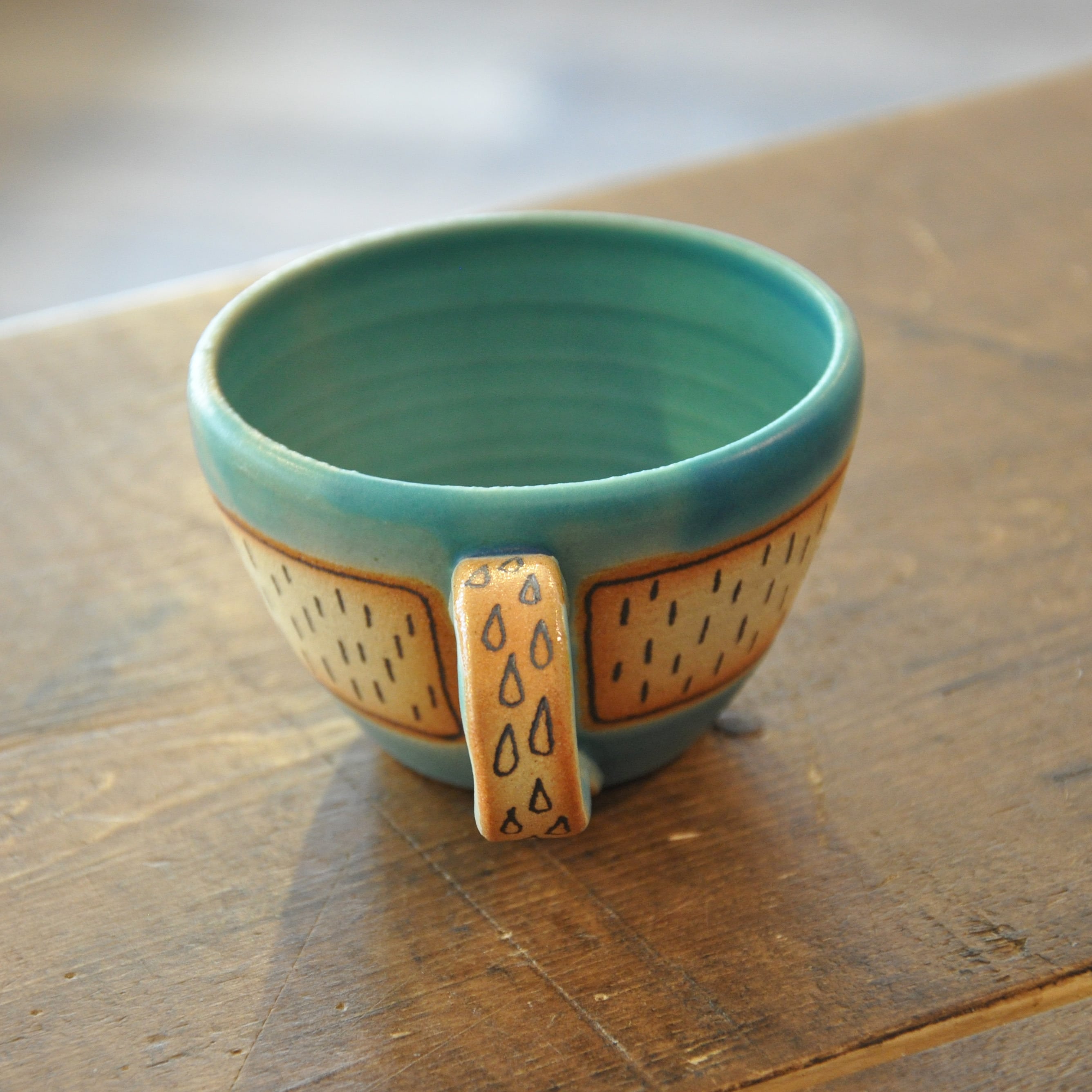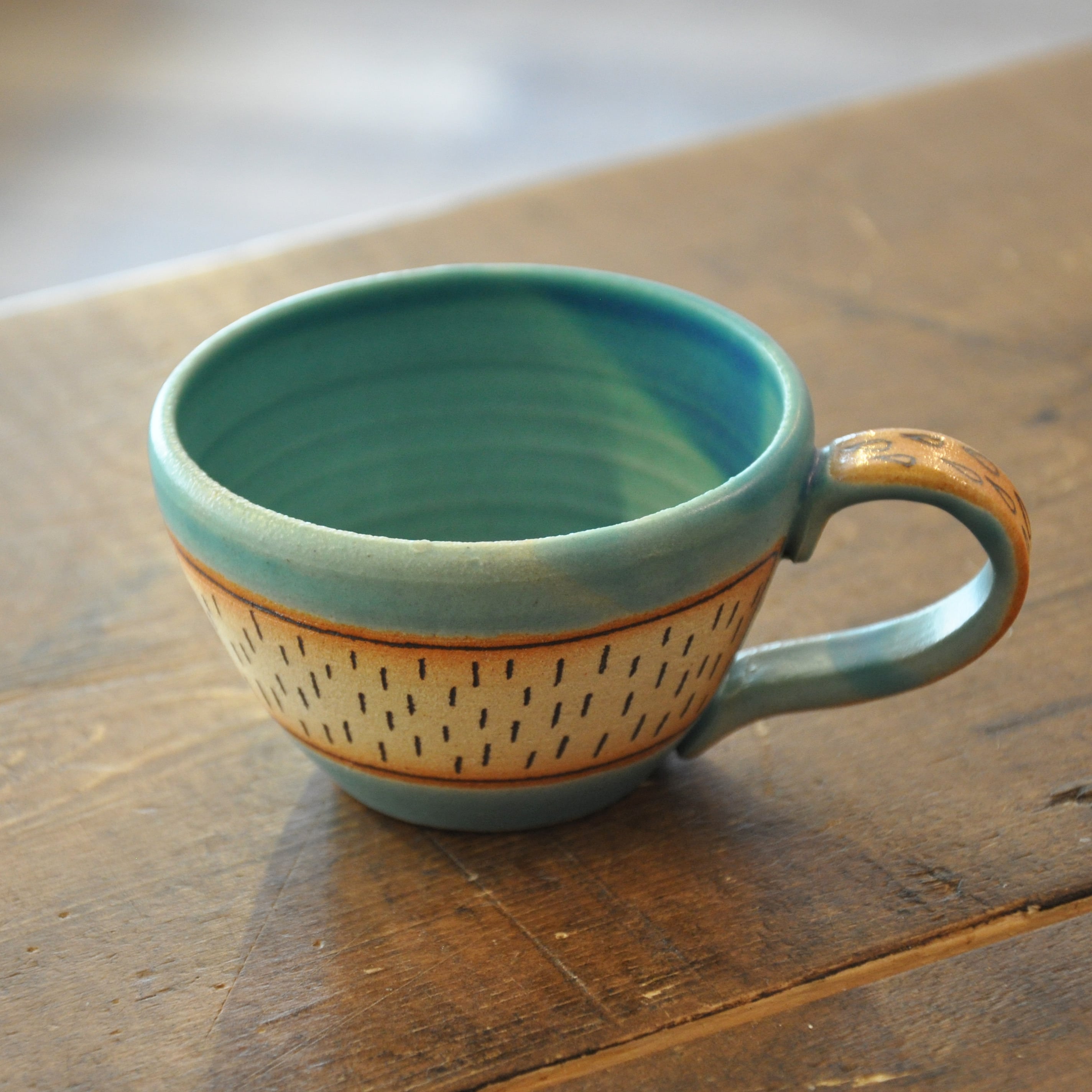沖縄の海を思わせる綺麗なブルーのカップ。