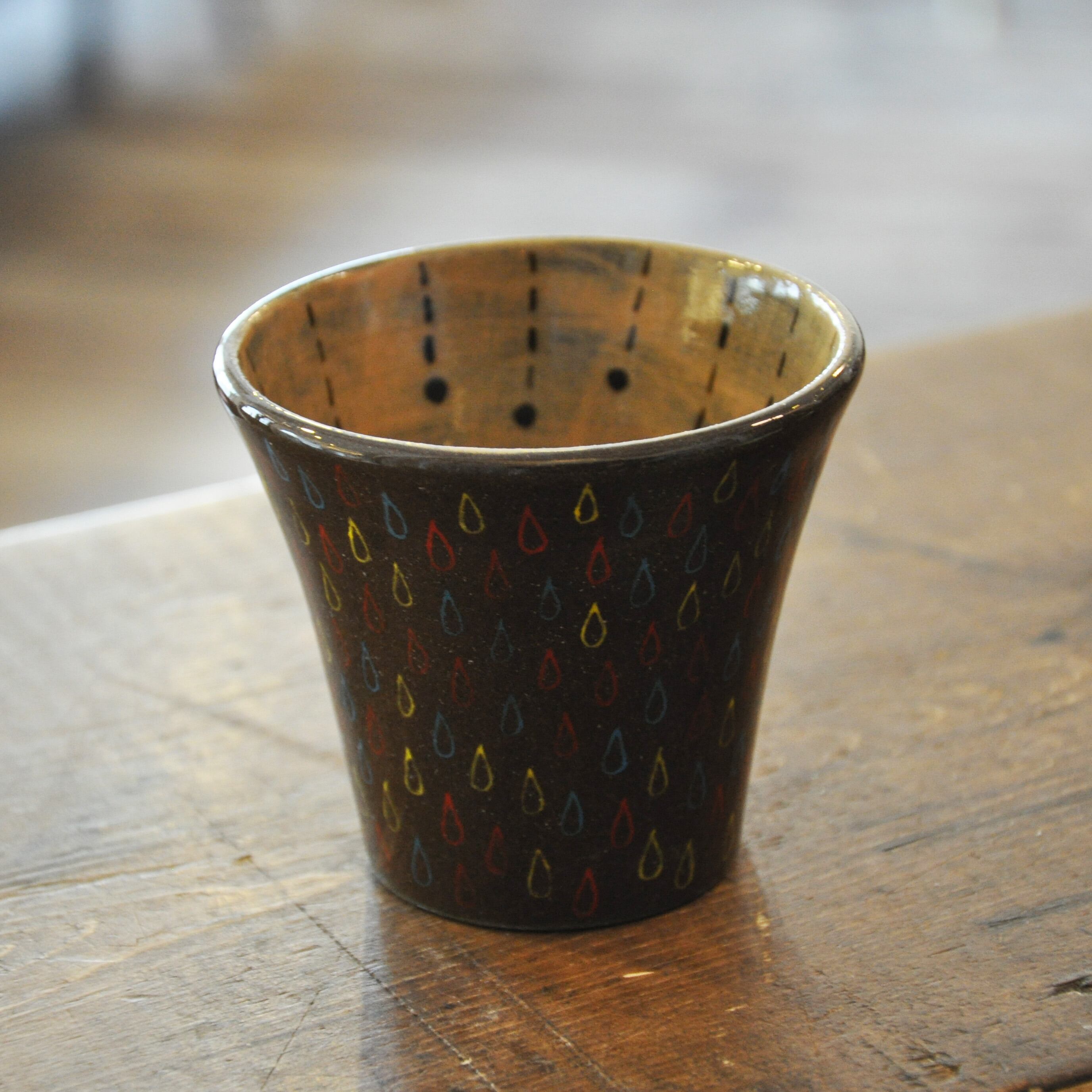 茶色のフリーカップにカラフルな模様がとてもキュート。