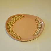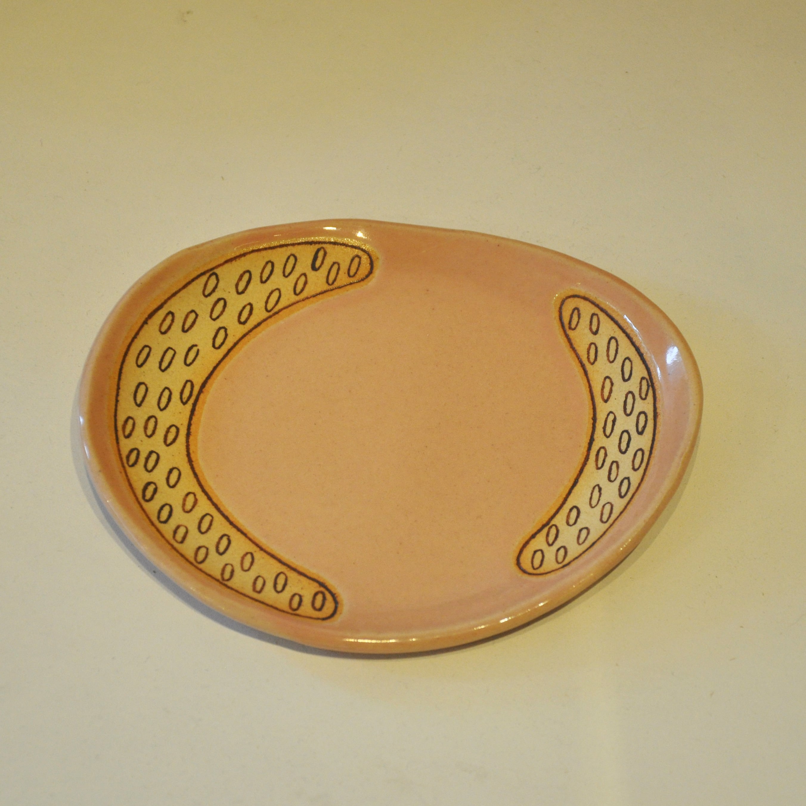 ピンク色のソーサー。カップに合わせても、お皿としてもどちらでもお使いいただけます。